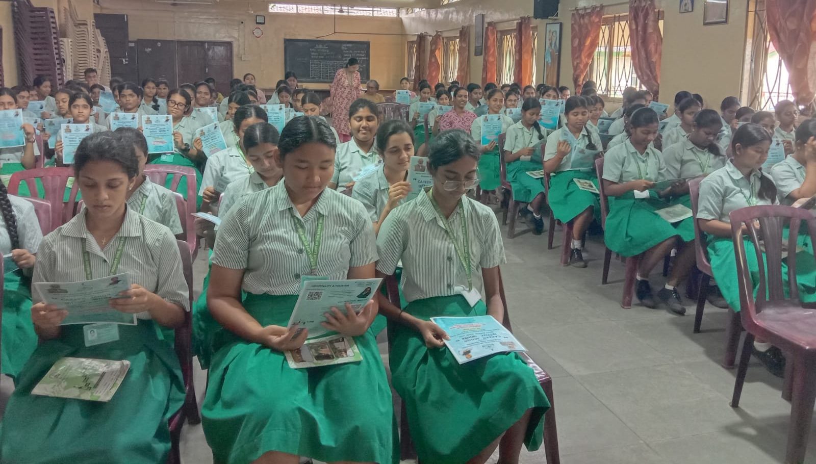 109 Students participated in the program. The PPT sent from GSCERT was shown and the pamphlets were distributed. The students were also informed about the courses offered by various colleges under Goa university.