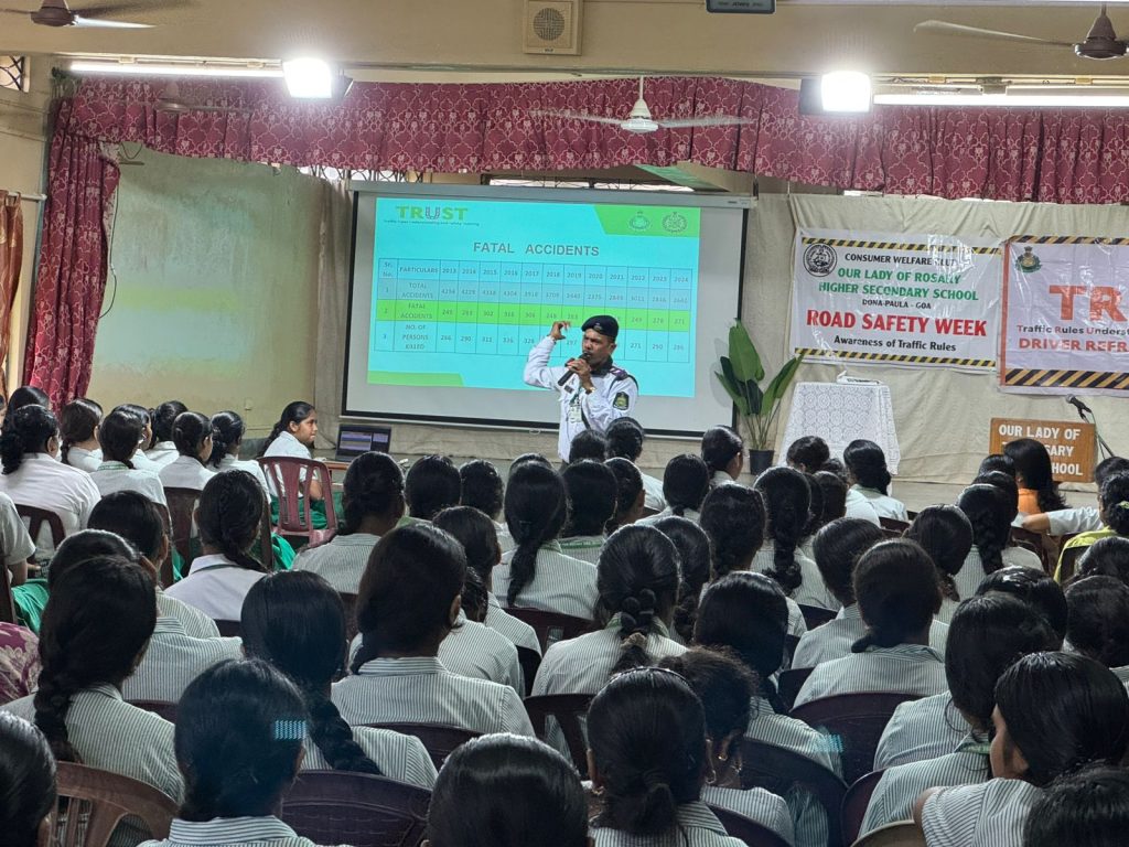 To commemorate the 14th Road Safety Week 8th – 14th Sept 2025, themed “Accident Pains, Safety Gains”. The Consumer Club of Our Lady of the Rosary Higher Secondary School, Dona Paula organised a Road Safety Awareness Talk for the students of Std 11th.