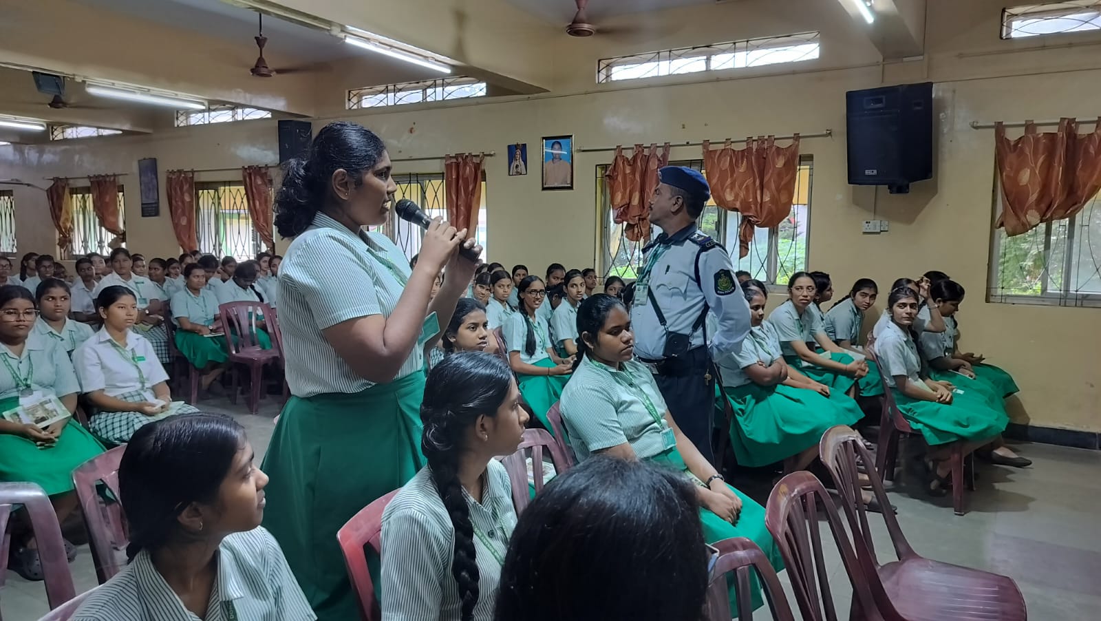 The Guest Speaker PSI Tukaram Mandrekar with his 30 years of experience in the Traffic Cell captivated the girls with his in-depth knowledge on Traffic rules and sections.
