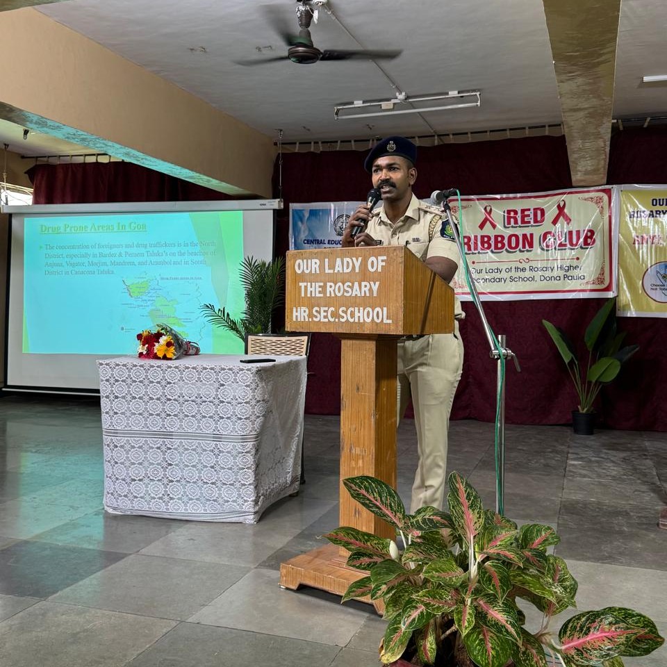 Anti-Tobacco Cell and Red Ribbon Club of Our Lady of the Rosary Higher Sconary School organised a session on Drug Abuse by PSI Mr. Dindayal Redkar and team from the Anti-Narcotics Police Station, Goa,on 20th September 2025The talk was very interesting and informative. A video depicting the disasters awaiting the youth falling into the drug trap was also projected.