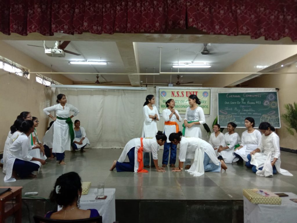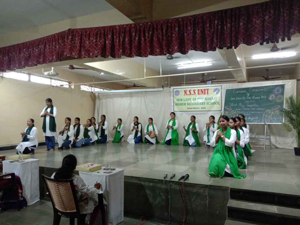 The N.S.S. Unit of Our Lady of the Rosary Higher Secondary School Dona Paula in collaboration with the school Cultural Committee organised a Street Play on the topic “Youth – The Nation Builders of Independent India” on 12th August 2025 in the school hall. The judges were Ms. Trupti Salgaonkar teacher from Government High School Dona Paula and Ms. Antonet De Sousa teacher from Our Lady of the Rosary High School. After the competition the Principal and judges addressed the students and appreciated them, they also praised them for giving in their best and acting with a lot of passion.